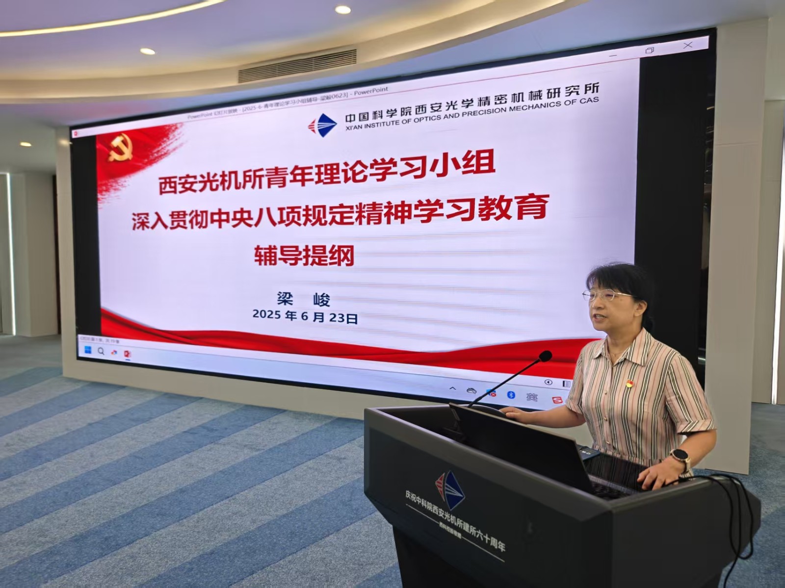 6月23日,中國科學院西安光機所青年理論學習示范小組開展深入貫徹中央八項規定精神學習教育主題實踐活動。紀委書記梁峻出席會議,黨群工作處有關同志參加,青年理論學習示范小組成員等40余人參會。會議由青年理論學習示范小組第二組組長薛勛主持。