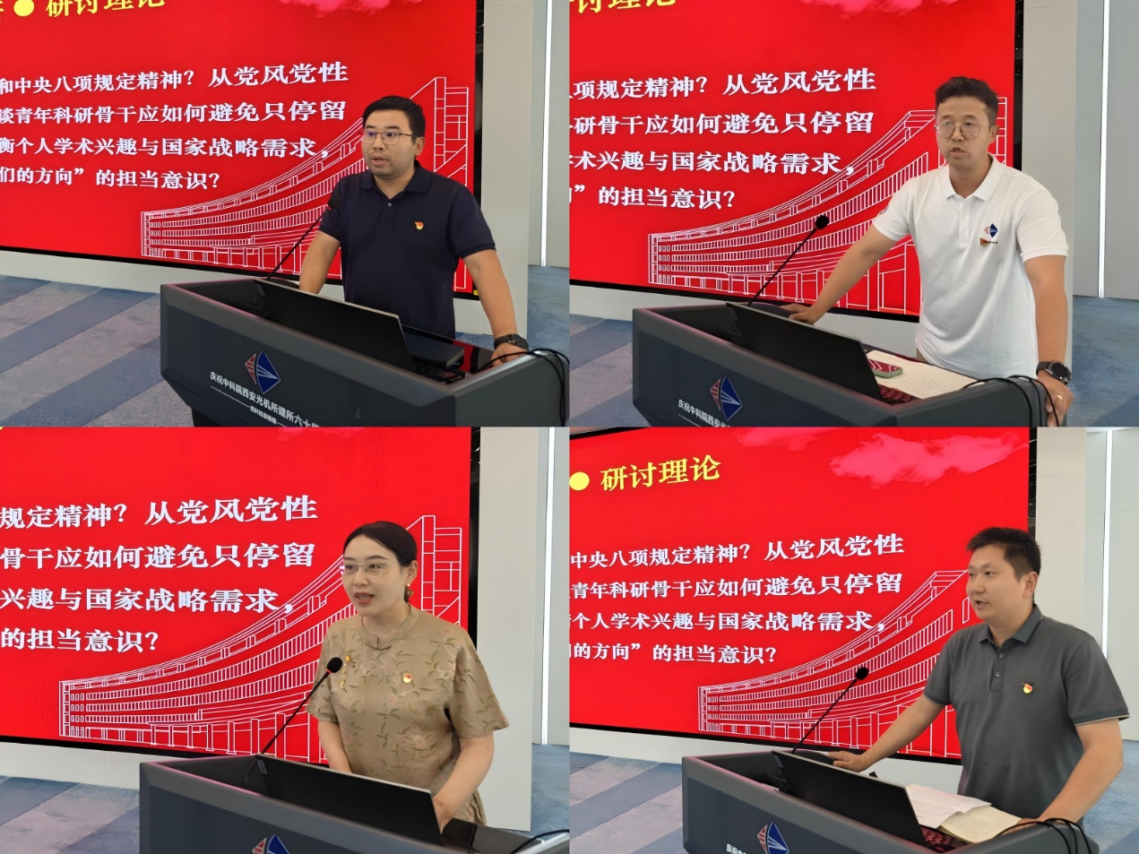 最后,梁峻對活動的策劃組織和實施給予了充分肯定,并在總結講話中對全體成員提出四點要求,一是青年骨干要爭做理論學習的示范者,深刻領會中央八項規定精神的核心要義,將學習成效主動融入到科技創新的實踐中;二是要善做制度執行的宣貫者,積極發揮作為支部書記、部門負責人、課題負責人的橋梁紐帶作用,推動制度要求在基層一線落地生根;三是要勇做研究所綜合治理的督導員,發揮青年人激情、敏銳、有勇氣、愿擔當等特質,開展伴隨式、融入式監督,積極建言獻策,推動研究所治理體系和治理能力現代化;四是要力做政治生態的引導者,以身作則,帶頭弘揚科學家精神,帶頭與不良言行作斗爭,影響和帶動更多青年科研人員樹立正確的價值觀、事業觀。